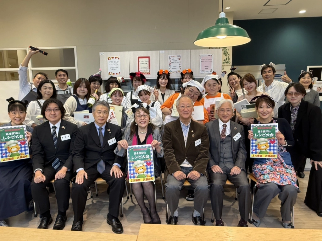 審査委員長の大瀬先生は、「本日のメニューには『つくる責任、つかう責任』(Sdgs12)や、『すべての人に健康と福祉を』(Sdgs3)といった理念が、確かな工夫と創意によってかたちにされていました。地元の食材や備蓄商品を上手に活用し食材の皮まで無駄なく使う姿勢には、未来を見据えた食の在り方が感じられます。栄養バランスにも配慮された献立は単なる料理を超え、『持続可能な社会を食から支える』という強いメッセージそのものです。皆さんの発想力と実践力に心から敬意を表します」と話し、大会を締めくくりました。