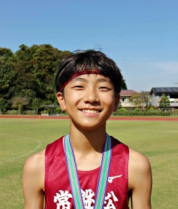 陸上部とサッカーのクラブチーム。サッカーは引退をし、今は駅伝一本で活動をしている。自分の思うような走りはできず追い付かれたので、いいレースはできなかった。緊張はしていたが、応援などが力になり徐々に緊張がほぐれていった。野田一中の倉持壮選手が、後ろから迫ってくるのは感じていたので苦しかった。相手は3000mで全国大会に出場した格上選手だからこそ「勝ちたい」という気持ちは強かった。