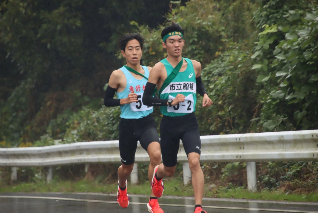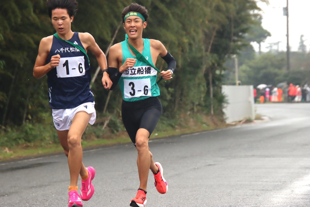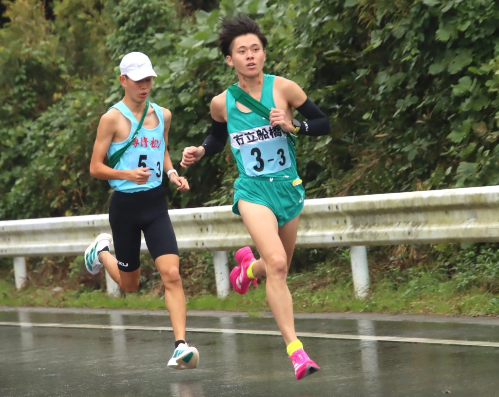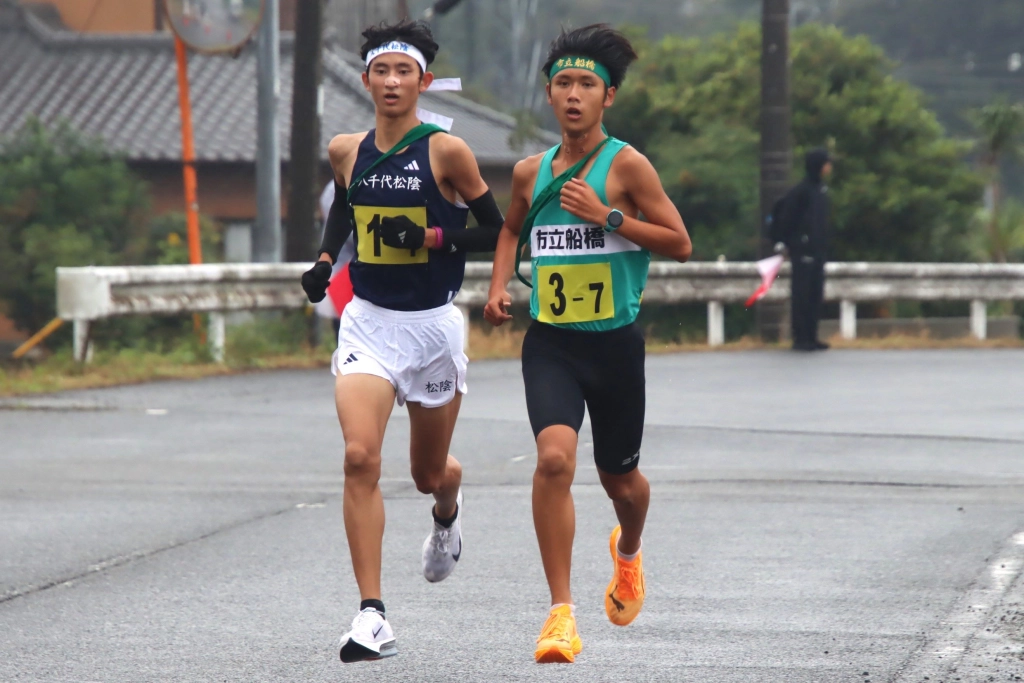 1区、2区は八千代松陰の上杉敦史選手、伊藤悠ノ介選手が連続で区間賞。2区終了時は2位専大松戸と13秒、3位市立船橋と18秒差となった。3区は西武台千葉の山脇一徹選手が23分40秒の区間新記録で3位とタイム差なしの2位に浮上し、1位八千代松陰から2位西武台千葉、3位市立船橋まで2秒差に詰まった。4区は市立船橋の松尾航希選手が24分6秒の区間新記録で八千代松陰と西武台千葉を逆転し、1位で5区へつないだ。5区以降は市立船橋と八千代松陰の一騎打ちとなった。