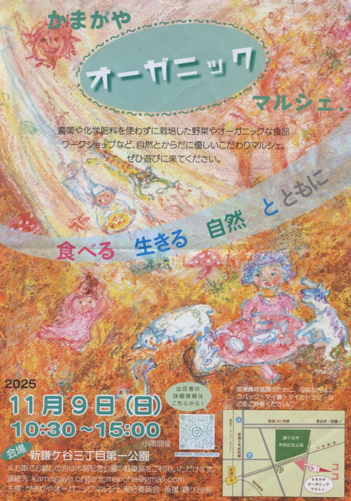 農薬や化学肥料を使わずに栽培した野菜やオーガニックな食品の販売、ワークショップなど