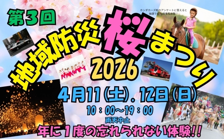 春の訪れとともに、柏市中原の空が桜色と幻想的な光に包まれる。来る4月11日㈯、12日㈰、中原ふれあい防災公園にて「第3回 地域防災桜まつり」が開催される。回を重ねるごとに地域の恒例行事として定着しつつある本祭りは、美しい景観を楽しむだけでなく、いつか来る災害に備え、住民同士の「顔の見える関係」を築く貴重な機会となっている。