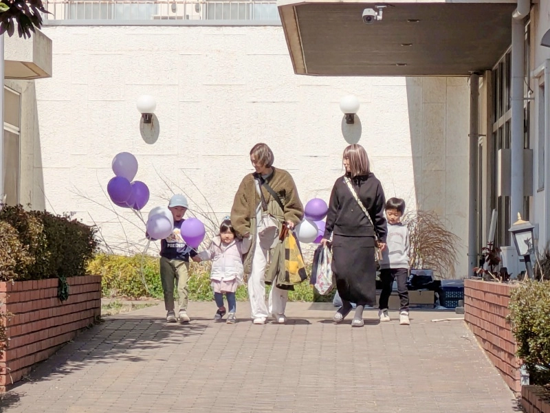 午前10時から始まった式には、かつてここで共同生活を送った卒業生や地域住民らが参集。建物のガラスに卒業生が感謝の言葉を綴り、その子どもたちがお絵描きを楽しむ「寄せ書き」が行われたほか、松戸神社の神職による清祓(きよはらい)も営まれた。その後、恒例の「餅まき」が始まると、参加者は階上から投げられる餅や菓子を笑顔で受け取っていた。