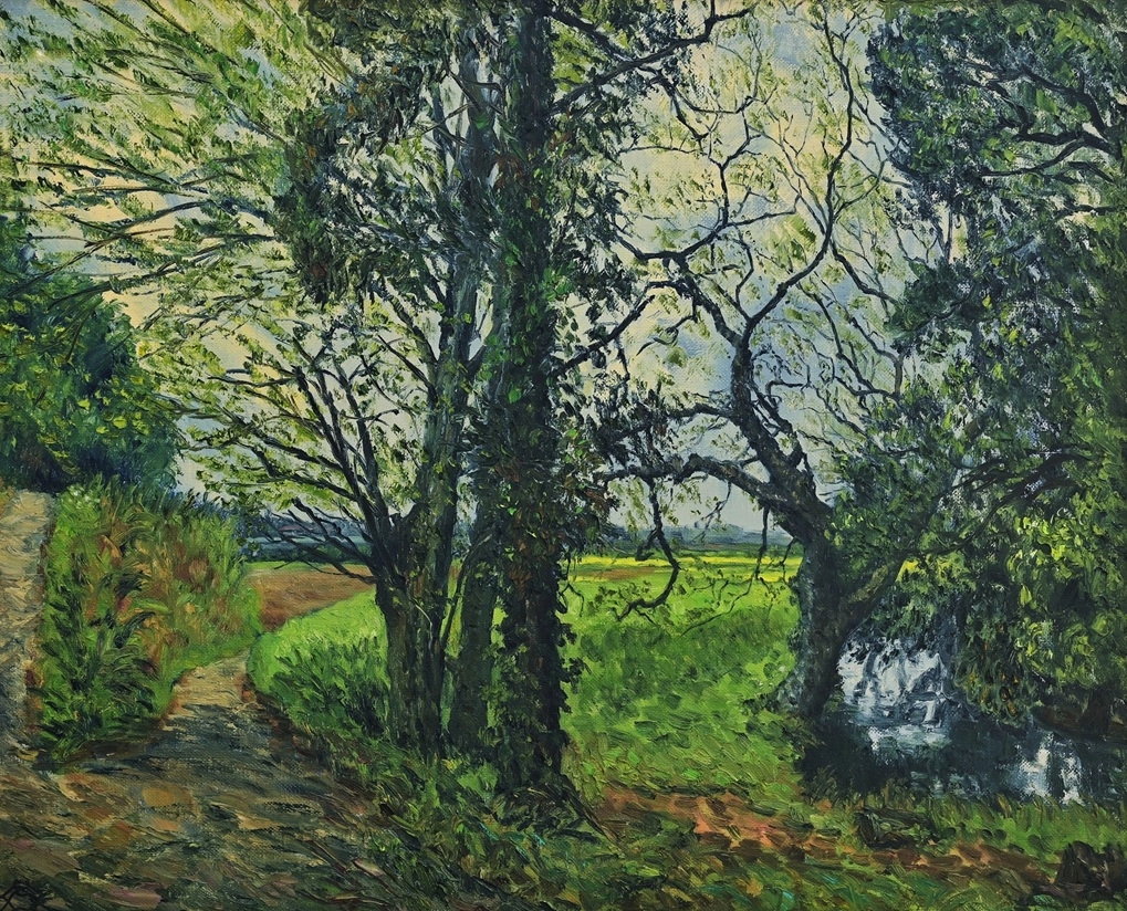 今回の展示作品の中から、小野昭氏の作品「菜の花畑への道」。