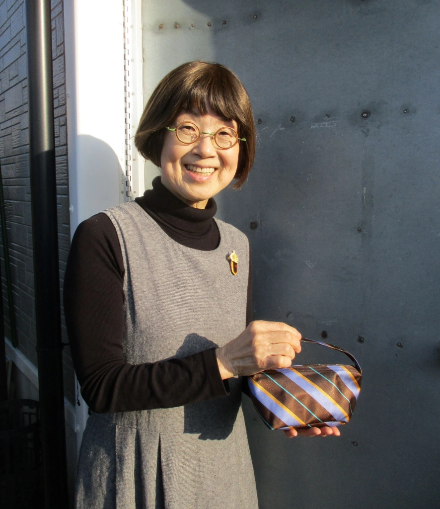 東日本大震災が起きた当時、友人でいつも活動を応援してくれる高野章子さんは被災地の人たちのために何かをしたいと、小林さんを訪ねて来た。二人は中古のネクタイの提供を呼び掛け、ポーチを作り、その売り上げを支援金として被災地に送る活動を考えた。20名以上のメンバーで始動。ネクタイポーチ作りは月2回のペースで活動を続け、健康福祉まつりなどで募金活動も行っている。