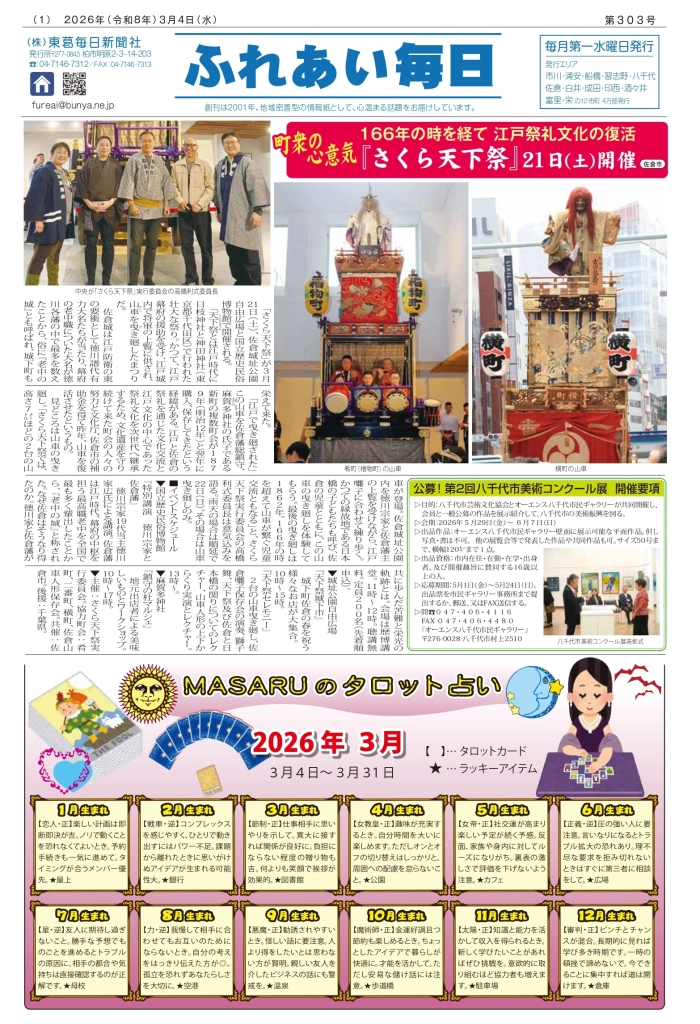 東葛毎日新聞社 ふれあい毎日(月1回第一水曜日発行 主要配布エリア:市川・浦安・船橋・習志野・八千代・佐倉・成田・印西・酒々井・富里・栄)
