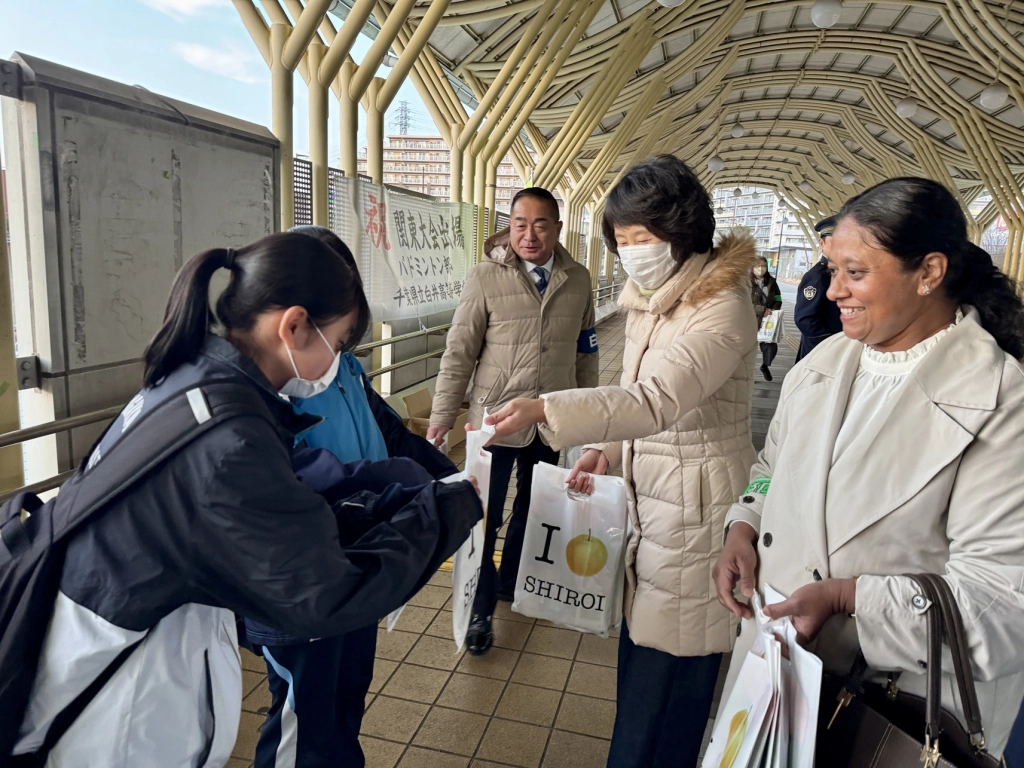 白井市と千葉県印西警察署は昨年12月23日、北総鉄道白井駅前で「外国人合同防犯パトロール」を実施した。
