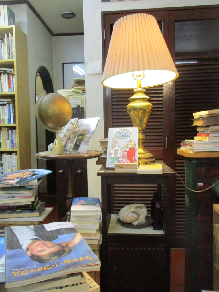 店の奥にはアンモナイトがランプの下で輝いていた。その横の古い地球儀も気になる。一日いても飽きない空間だ。