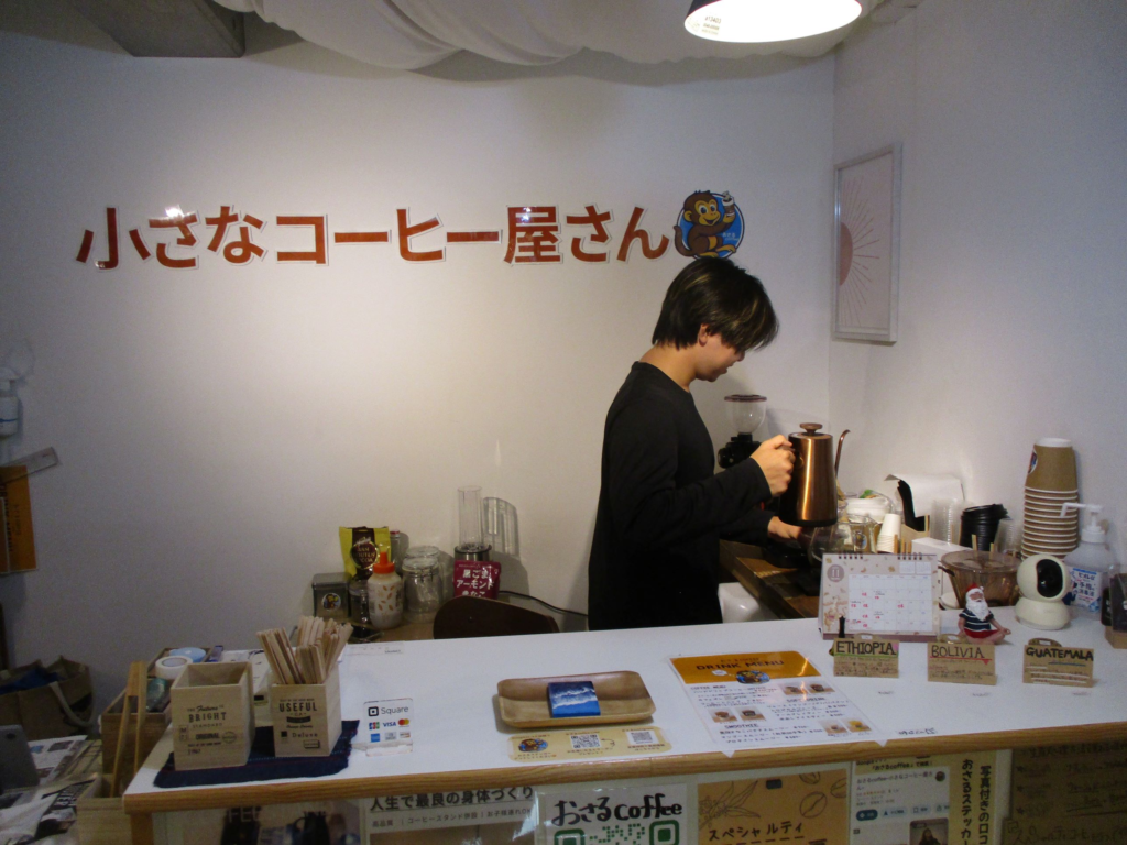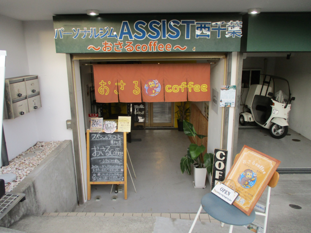 京成線の線路が見える位置まで歩き、橋の所でひと休みしようとすると、「おさるのCoffee」の看板を見つけた。面白いネーミングだ。こんな所に・・と、地下へ通じる入口が。暖簾を潜ると小さなコーヒー屋があった。横にはジムが併設されていたのは意外だった。夫婦で営むジム&コーヒー屋さんだ。