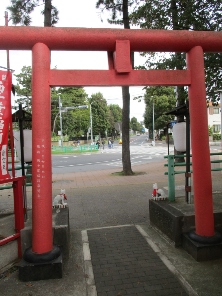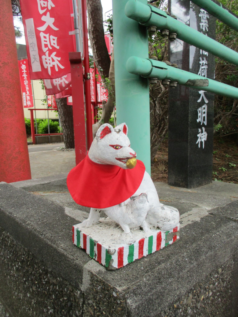 駅を降りると、松林が続き、すぐ西千葉稲荷大明神の赤い鳥居が現れた。狐が黄金色の球を咥えているのが愉快で、この先の何かを予言しているようだ。